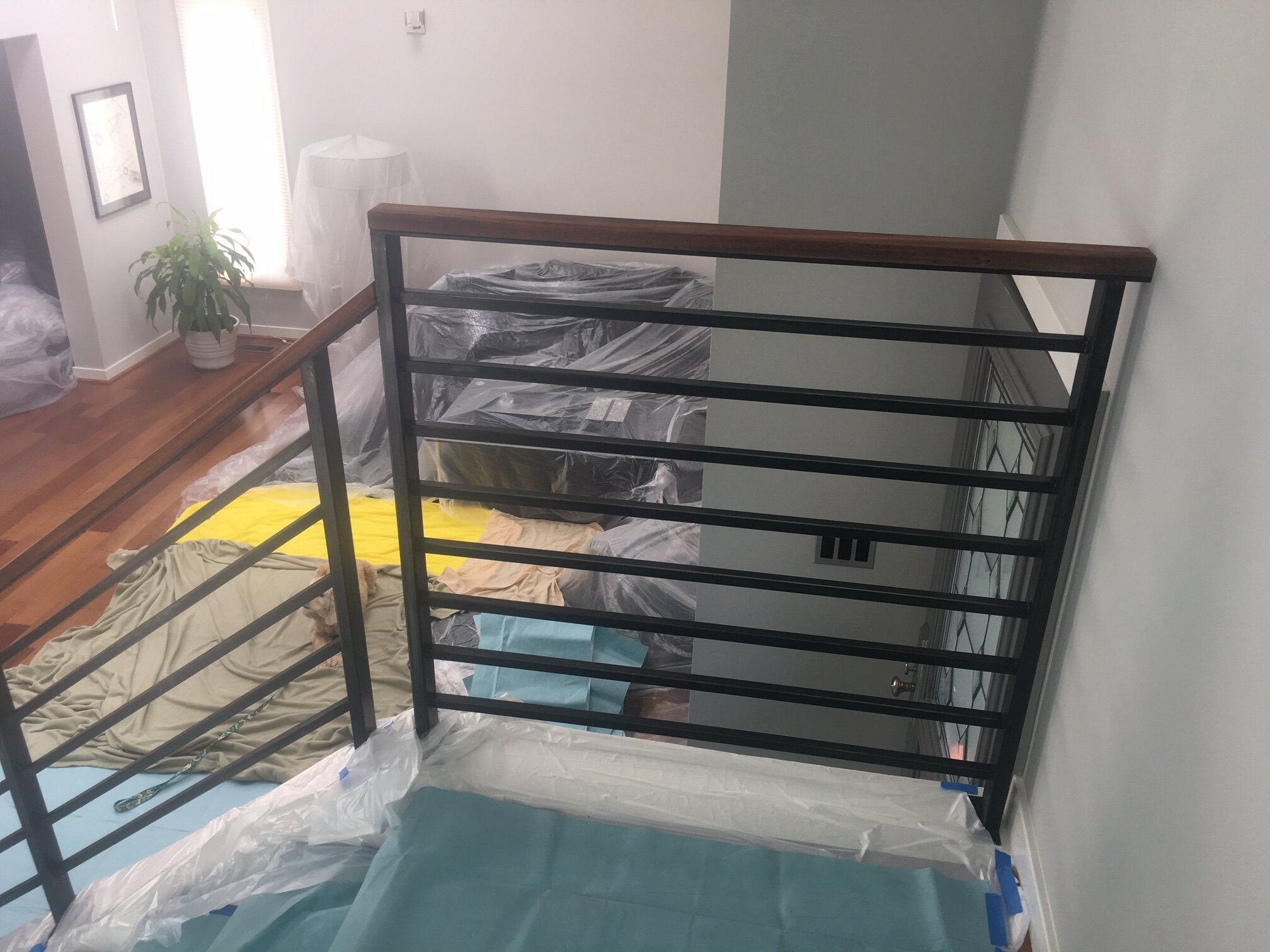 Painted Steel Square 3/4” Horizontal Bars and 1 1/2” Posts, Hardwood Top Handrail